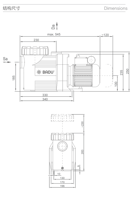 通过一个过滤器系统,游泳池的水循环。泵可以安装最大的距离水位3米处或低于水的水位。为节能泵,适用于大型私家泳池、酒店泳池和特殊定制泳池。